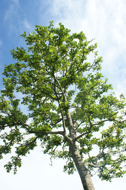 學校門口那棵喊不出名字的樹,總是開疏著一株詩意。直直瘦瘦的幹桿,你以為自已可以環抱,可它比你以為的粗實;枝枝疏疏的葉片在上頭,無法確認究竟是迷你的橄欖葉還是綠色的聖誕紅,你會喜歡透過它們往上看帶著葉影的天光,又被它們蔭涼包庇著。
