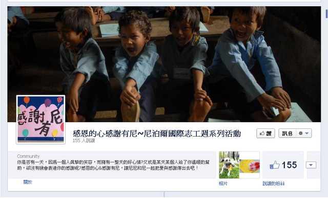 歡迎您到facebook粉絲團「 感恩的心感謝有尼~尼泊爾國際志工週系列活動」按個讚!
